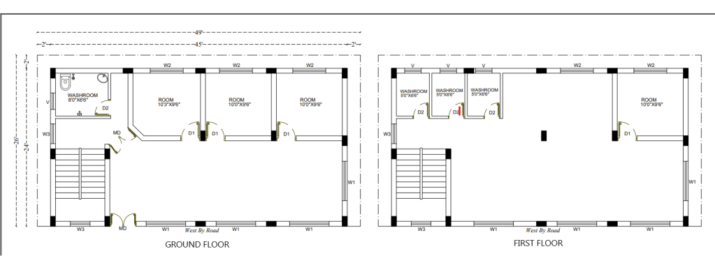 1. A Multistory building with the following plan budgeted for approximately INR. 60,00,000 (Sixty lakhs)